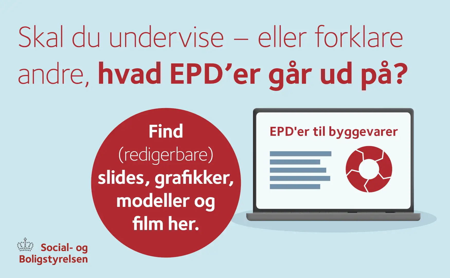Du kan med fordel henvise til disse materialer - eller tage udgangspunkt i dem, når/hvis du skal videreformidle viden om EPD’er til målgrupper, som ikke kender så meget til området.