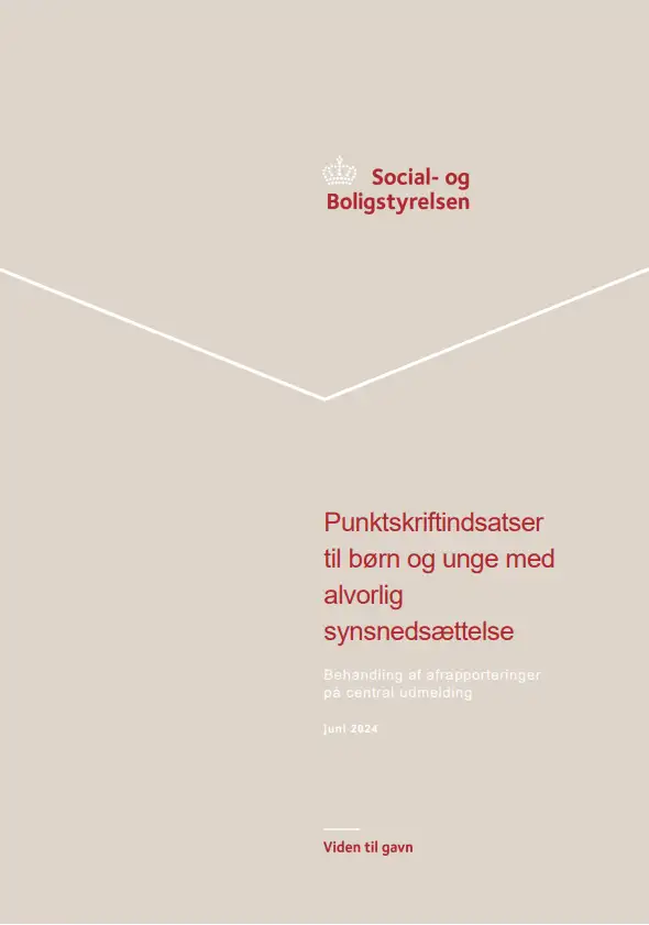 Rapporten indeholder Social- og Boligstyrelsens behandling af kommunalbestyrelsernes afrapporteringer på den landsdækkende centrale udmelding for punktskriftindsatser til børn og unge med alvorlig synsnedsættelse, som styrelsen udsendte til kommunerne i september 2022.